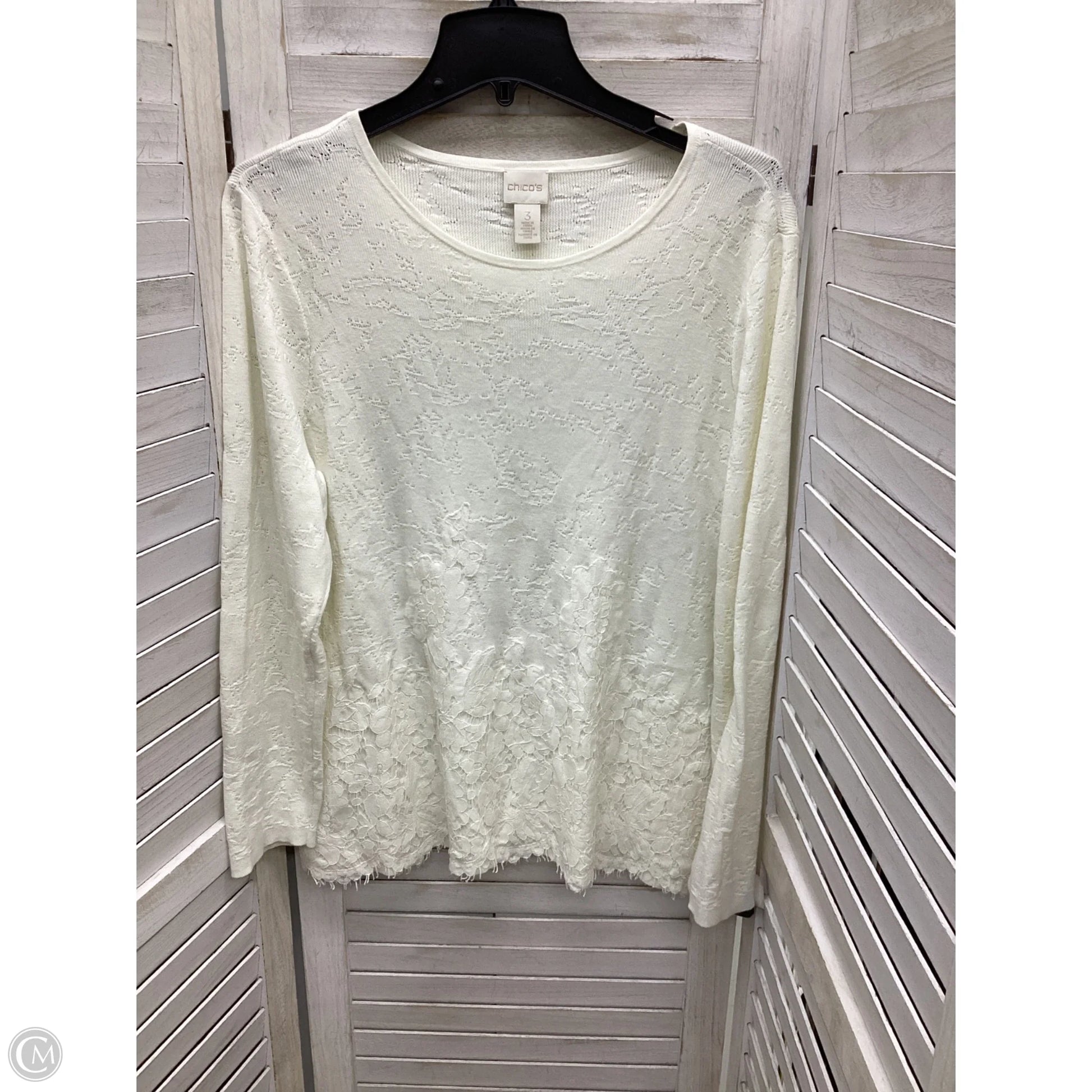 Top Long Sleeve By Chicos In White, Size: Xl